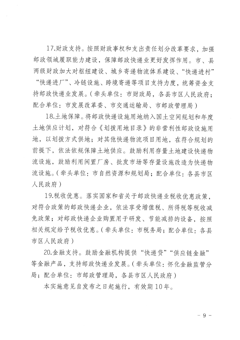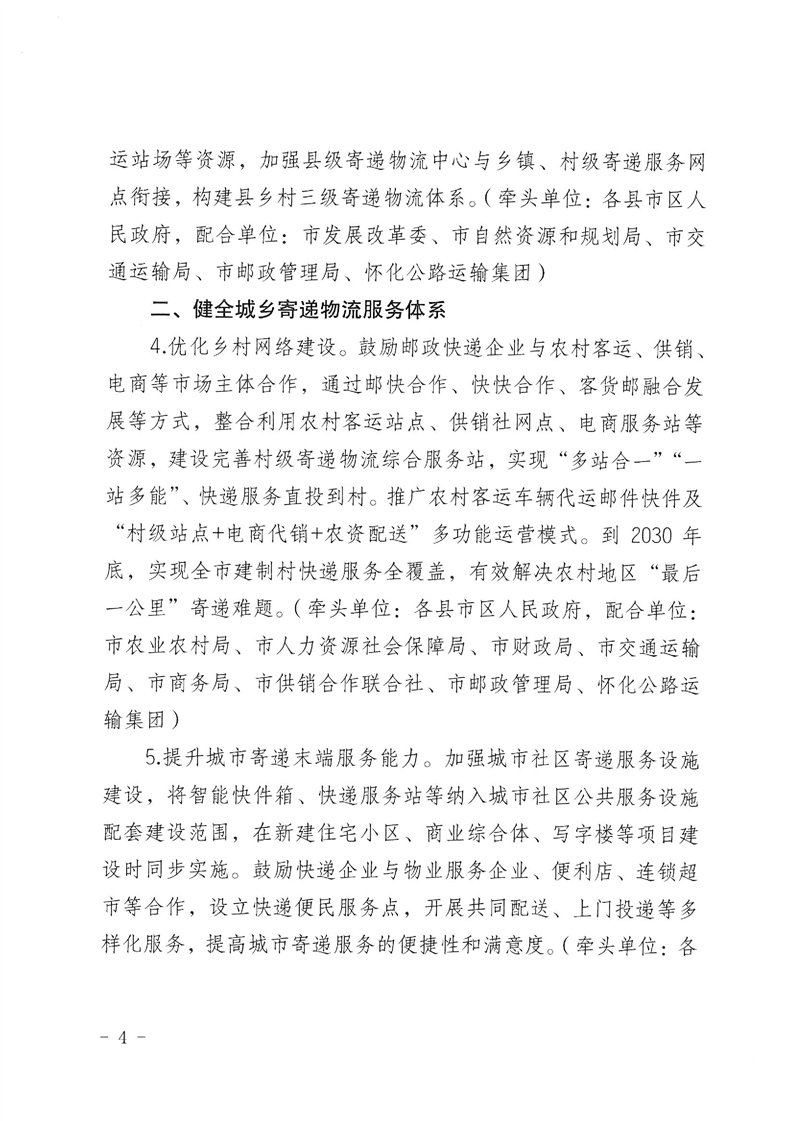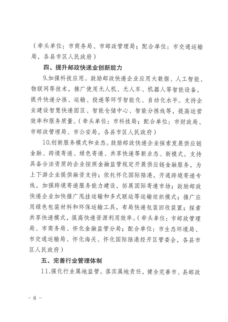 懷化市人民政府印發(fā)《關(guān)于建設(shè)國(guó)家郵政快遞樞紐城市促進(jìn)懷化市郵政快遞業(yè)高質(zhì)量發(fā)展的實(shí)施意見(jiàn)》的通知