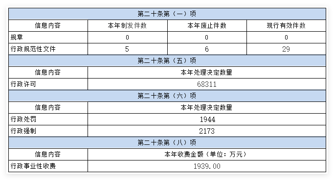 本年度報告根據(jù)《中華人民共和國政府信息公開條例》(以下簡稱《條例》)、湖南省政務(wù)公開領(lǐng)導小組辦公室《關(guān)于貫徹落實(中華人民共和國政府信息公開條例)實施方案》(以下簡稱《實施方案》)及《懷化市政府信息公開實施細則》(以下簡稱《細則》)的有關(guān)規(guī)定,由鶴城區(qū)政務(wù)公開領(lǐng)導小組辦公室編制。全文由總體情況、主動公開政府信息情況、收到和處理政府信息公開申請情況、政府信息公開行政復議行政訴訟情況、存在的主要問題及改進措施、其他需要報告的事項等六部分組成。本報告的統(tǒng)計數(shù)據(jù)時限為2024年1月1日至12月31日,通過懷化市鶴城區(qū)人民政府門戶網(wǎng)站對外公布。如對報告有任何疑問、意見,請與懷化市鶴城區(qū)政務(wù)服務(wù)中心聯(lián)系(地址:懷化市鶴城區(qū)政務(wù)服務(wù)中心五樓501室,郵編:418000,電話:0745-2338221,電子郵箱:hcqzwzx@126.com)。